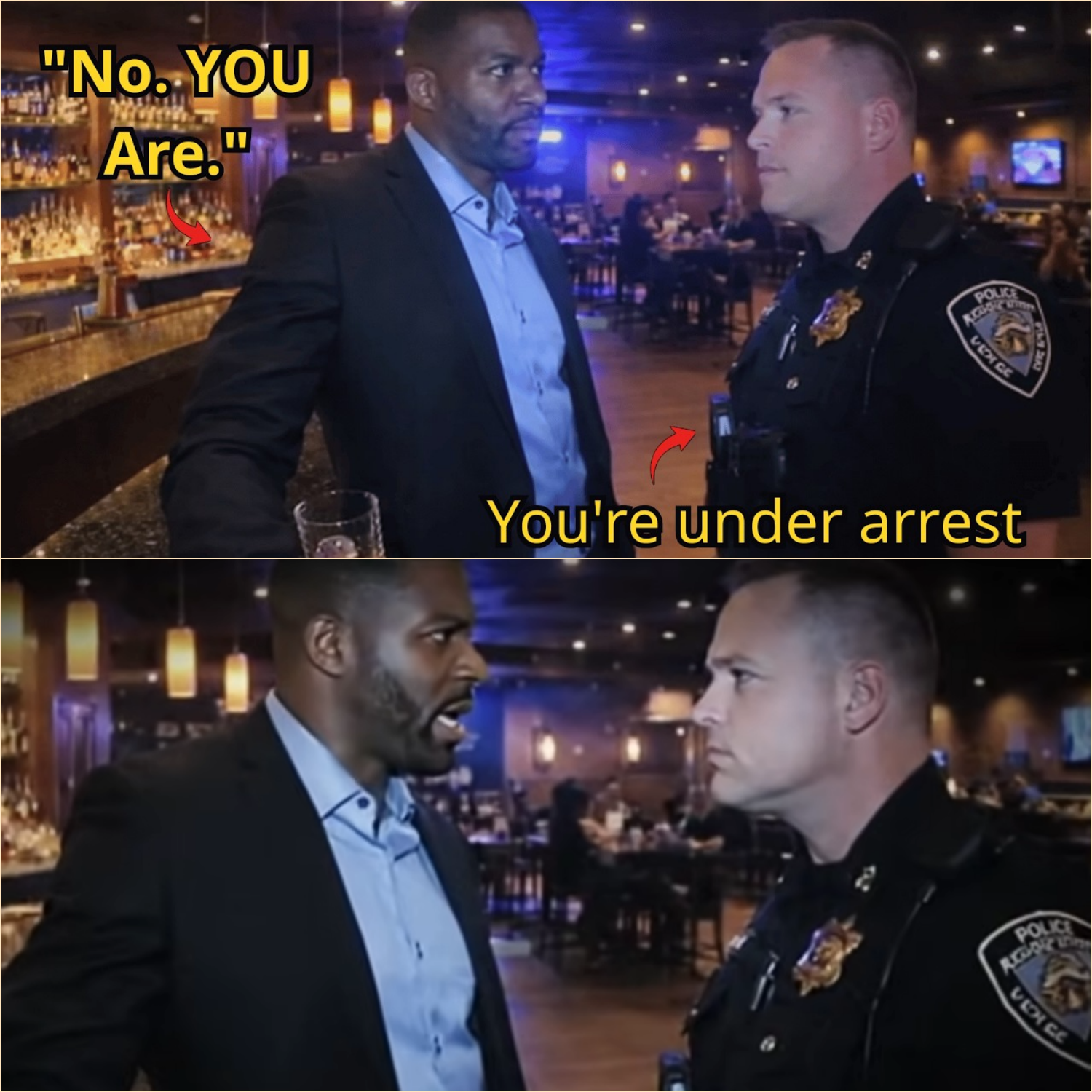 “Officer,” he said calmly, placing both hands on the bar. “Am I being detained?”