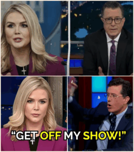 It wasn’t long before things escalated beyond mere political debate. Colbert, his patience wearing thin, made a biting remark about how Leavitt’s position seemed out of touch with the realities faced by everyday Americans. “Is this really what your party stands for, Karoline—keeping the rich rich and the poor poor?” he asked, his tone no longer playful but laced with contempt. Leavitt’s face flushed with anger. She leaned forward, eyes narrowing, and responded sharply, “What you’re not understanding, Stephen, is that it’s about freedom—freedom to make choices, to not have the government dictate how we live our lives. Your liberal policies only serve to grow the government, and that’s what’s going to destroy this country.”