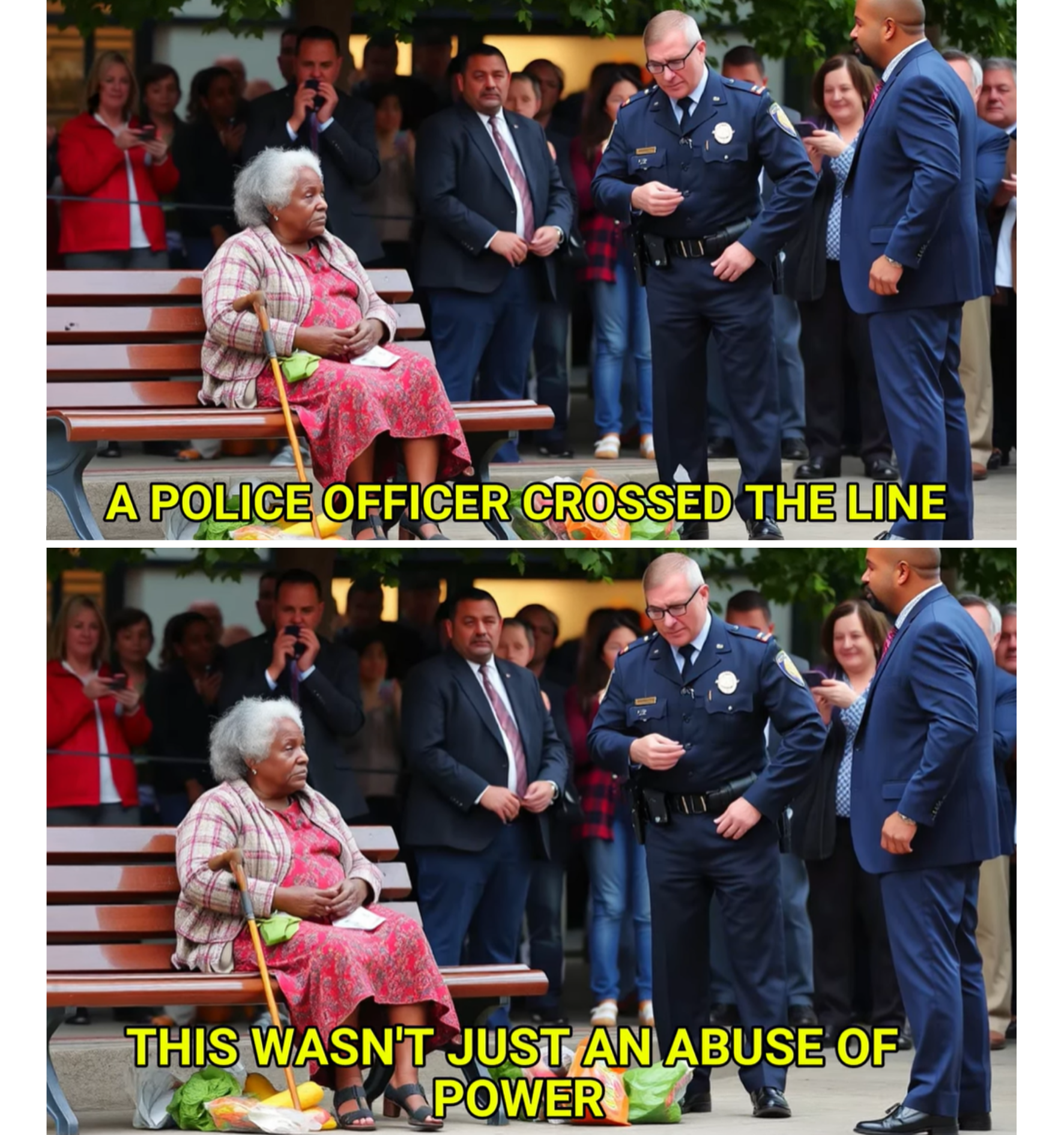Phones rose. Voices shouted. The crowd pressed closer. “You can’t treat people like that!” someone yelled. “She’s an old woman!”