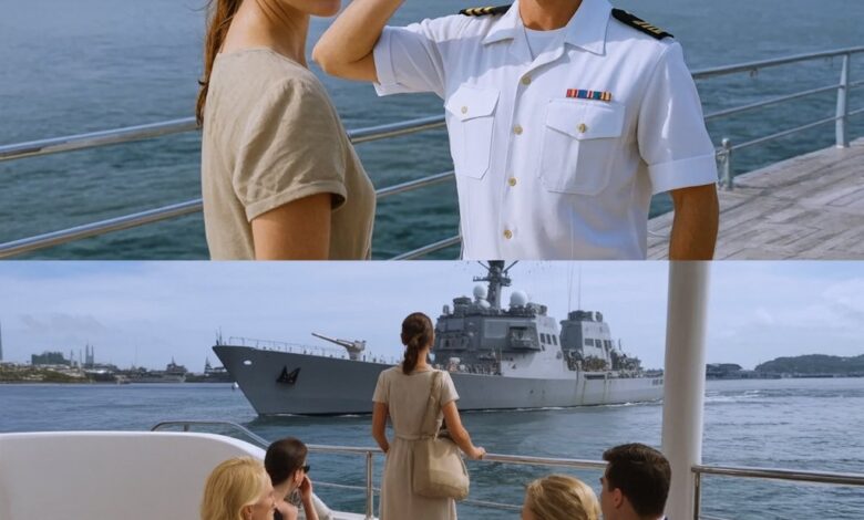 A small boat detached from the destroyer, cutting across the water toward the yacht. A young naval officer climbed aboard, his uniform immaculate. He walked straight to Claire, saluted sharply, and said, “Admiral Monroe, it’s an honor to see you again.”