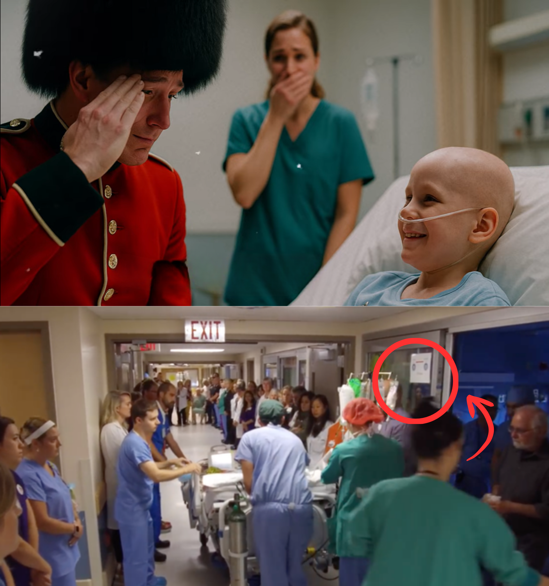 But the royal guard didn’t stop. His boots clicked against the sterile floor, each step measured, solemn. His red tunic gleamed under the fluorescent lights, his bearskin hat casting a shadow across his face. The hallway fell silent. Nurses paused mid-stride, doctors turned from their charts. No one knew what to do. This was not protocol. Guards did not leave their posts. Not for anything.
