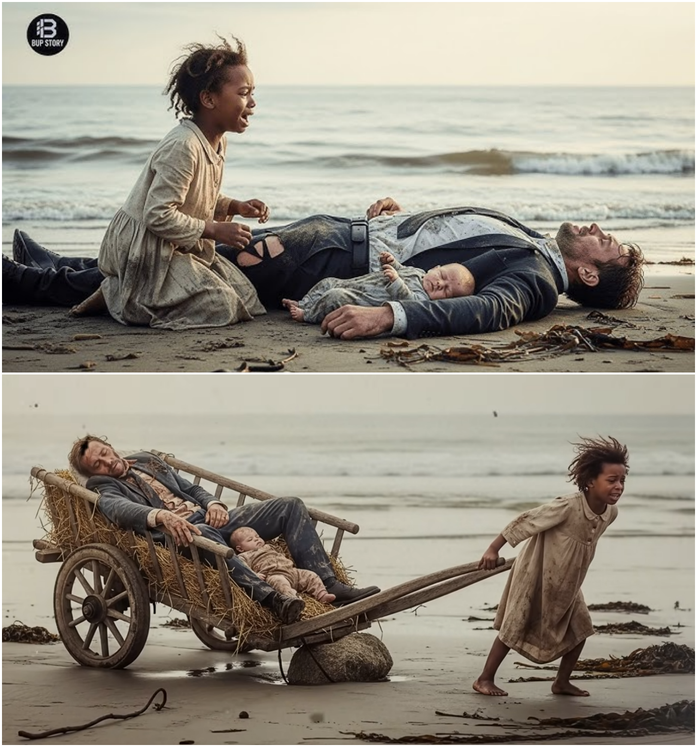 In the heart of a storm-tossed night, when the waves crashed against the jagged cliffs of Eden Bay, a tragedy unfolded that would change the lives of many forever. As the sea raged, a small figure stood on the shore, her bare feet sinking into the cold, wet sand. Anna, a homeless Black girl of just six years, had seen her fair share of despair, but nothing could prepare her for the sight before her—an unconscious man washed ashore, cradling a baby in his arms, both at the mercy of the relentless tide.