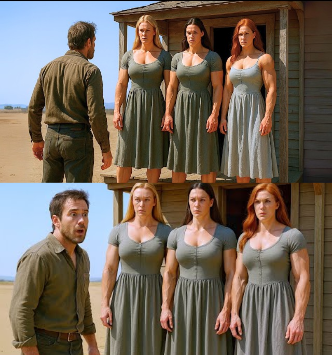 Three women stood before him, their muscular frames casting long shadows across the dusty yard. The tallest among them stepped forward, a smile on her face that didn’t quite reach her cold blue eyes. “You must be the new owner,” she said, her voice dripping with a confidence that sent a chill down Boon’s spine. As he looked at the other two women flanking her, he felt the intensity of their gazes, like predators sizing up their prey.