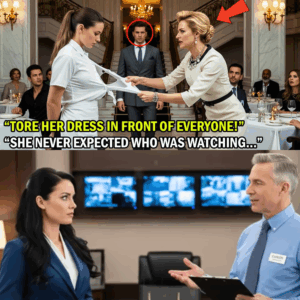 Arrogant & Cruel Woman Ripped Her Dress, Thinking She’s Just a Waitress—But Her Billionaire Husband Had Other Plans The sharp crash of shattered…