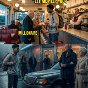 One fateful night, everything changed. Darius was finishing up the last of his tables when he noticed an elderly couple at table six, soaked to the bone. The woman’s silver hair dripped onto her designer coat, and her husband sat stiffly, his expensive suit clinging to him. They had only ordered coffee and had been nursing those two cups for over an hour. Darius watched as the woman searched her purse repeatedly, panic growing in her eyes. She dumped the contents onto the table: tissues, reading glasses, but no wallet.