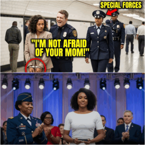 Officer Derek Mitchell stood before her, his tone aggressive and dismissive. Maya froze, closing her laptop with deliberate calm. Her heart raced, but her voice remained steady.