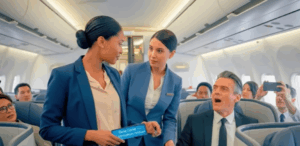 The confrontation drew the attention of Clare, the head flight attendant. She forced a polite smile as she approached.