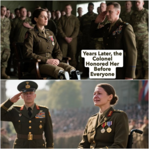 Eight years after the explosion, Sarah was working at a rehabilitation center when her assistant announced a visitor—Colonel Mitchell, in dress uniform, accompanied by two officers and a group of civilians.