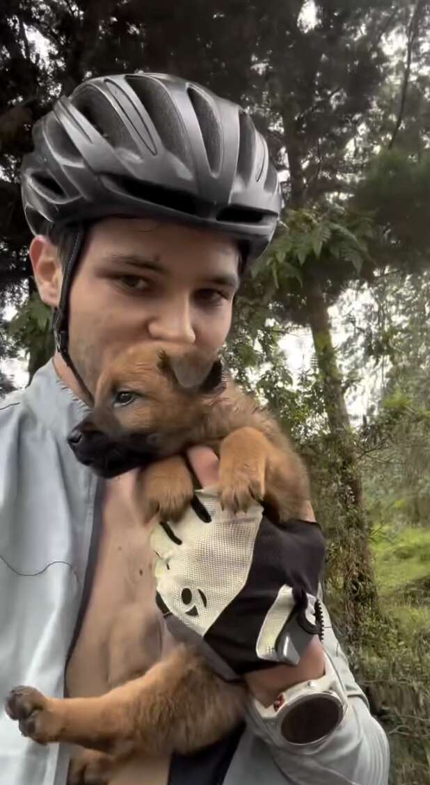 “Halfway up this climb, Héctor heard some noises that sounded like birds,” Pradilla told The Dodo. “When we looked down, two abandoned puppies were there.”