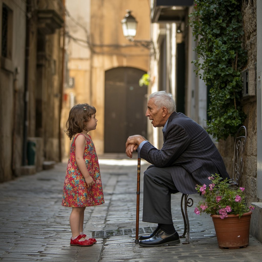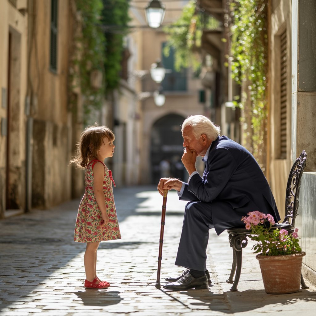 Little Alyonka, a bright and curious four-year-old, was standing in the courtyard of her apartment building when she noticed a new face. Sitting on the bench was an elderly man, his gray hair catching the sunlight. In his hands, he held a cane, which reminded Alyonka of a wizard’s staff.