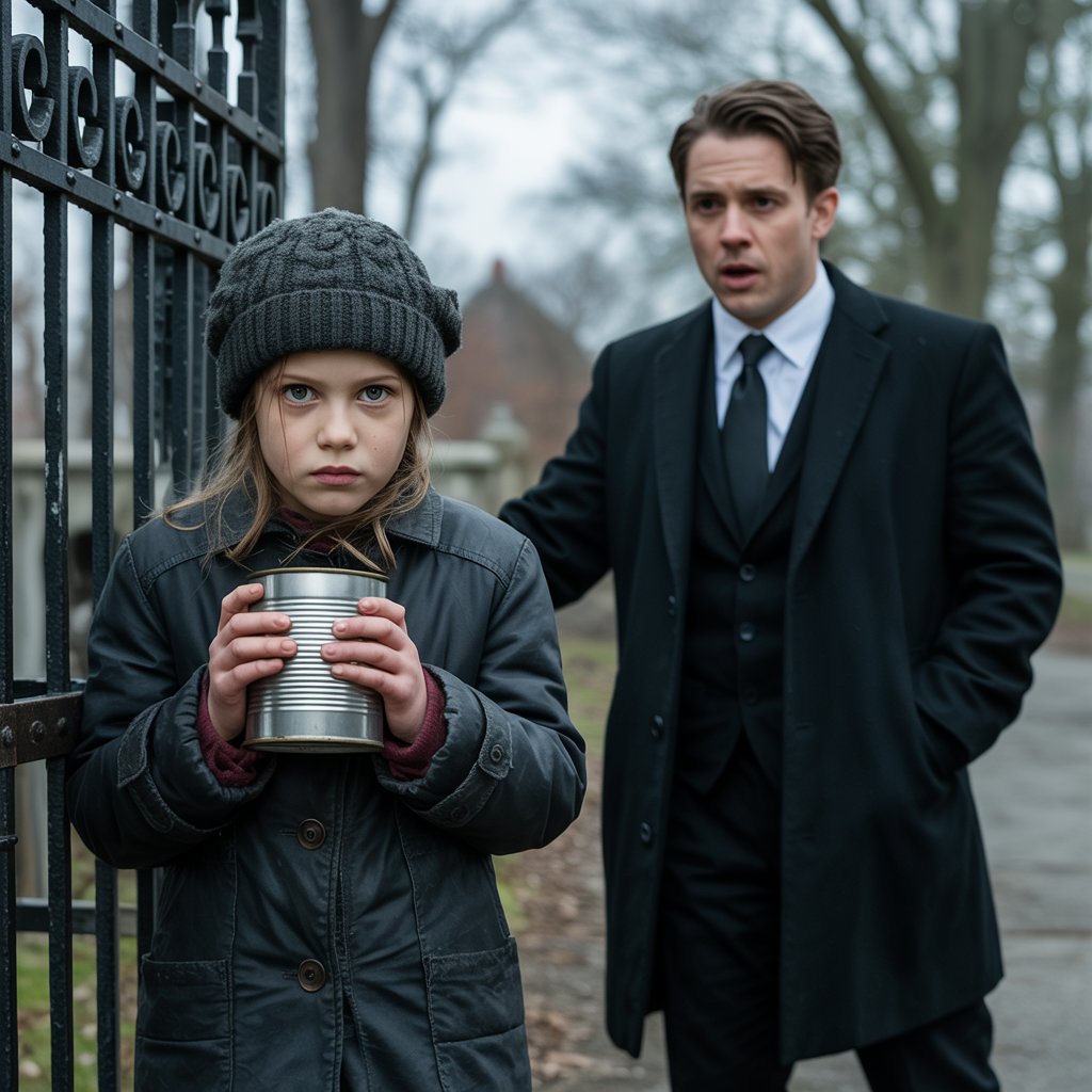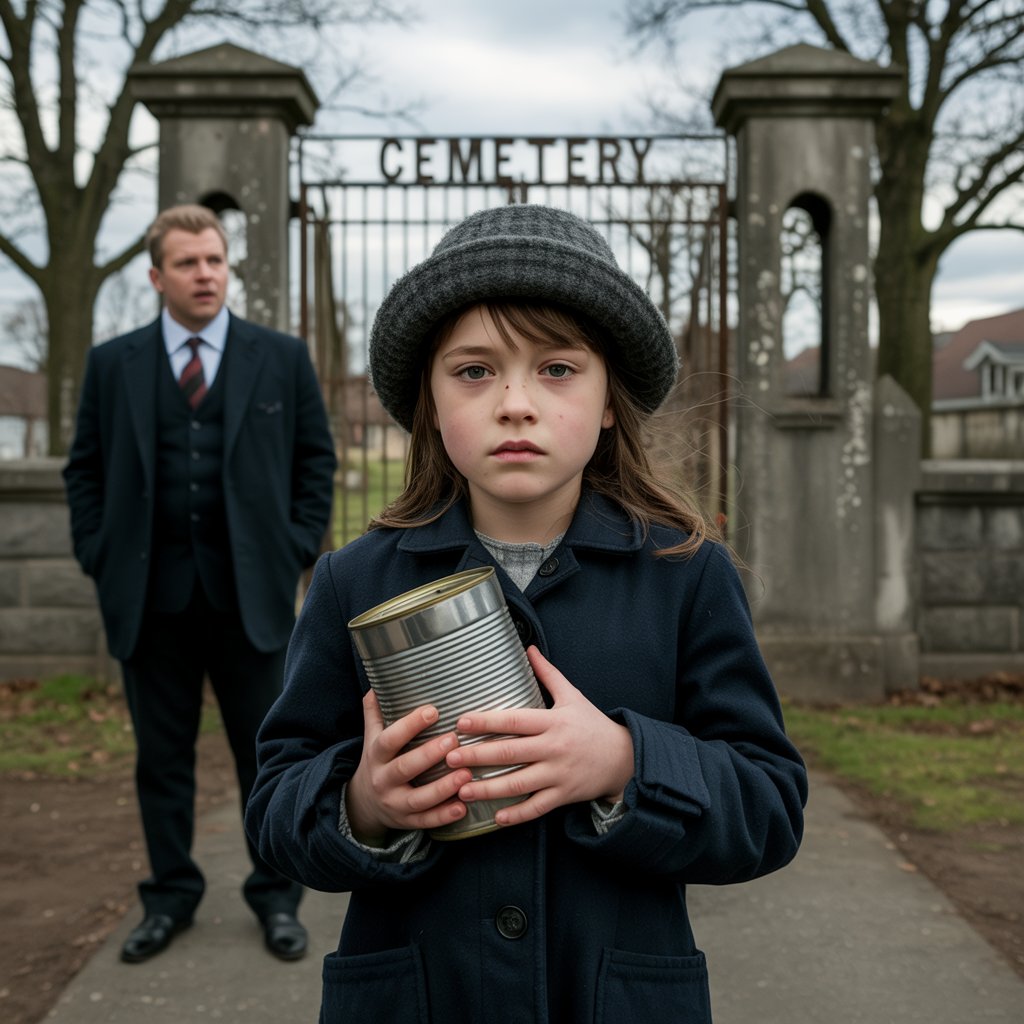 At the cemetery gates, Alex noticed a thin girl of about eleven, sitting on a bench in an oversized coat. A tin can with a few coins sat at her feet. “Uncle, spare some for bread?” she asked quietly. Alex, on autopilot, dropped two hundred-dollar bills into her can.