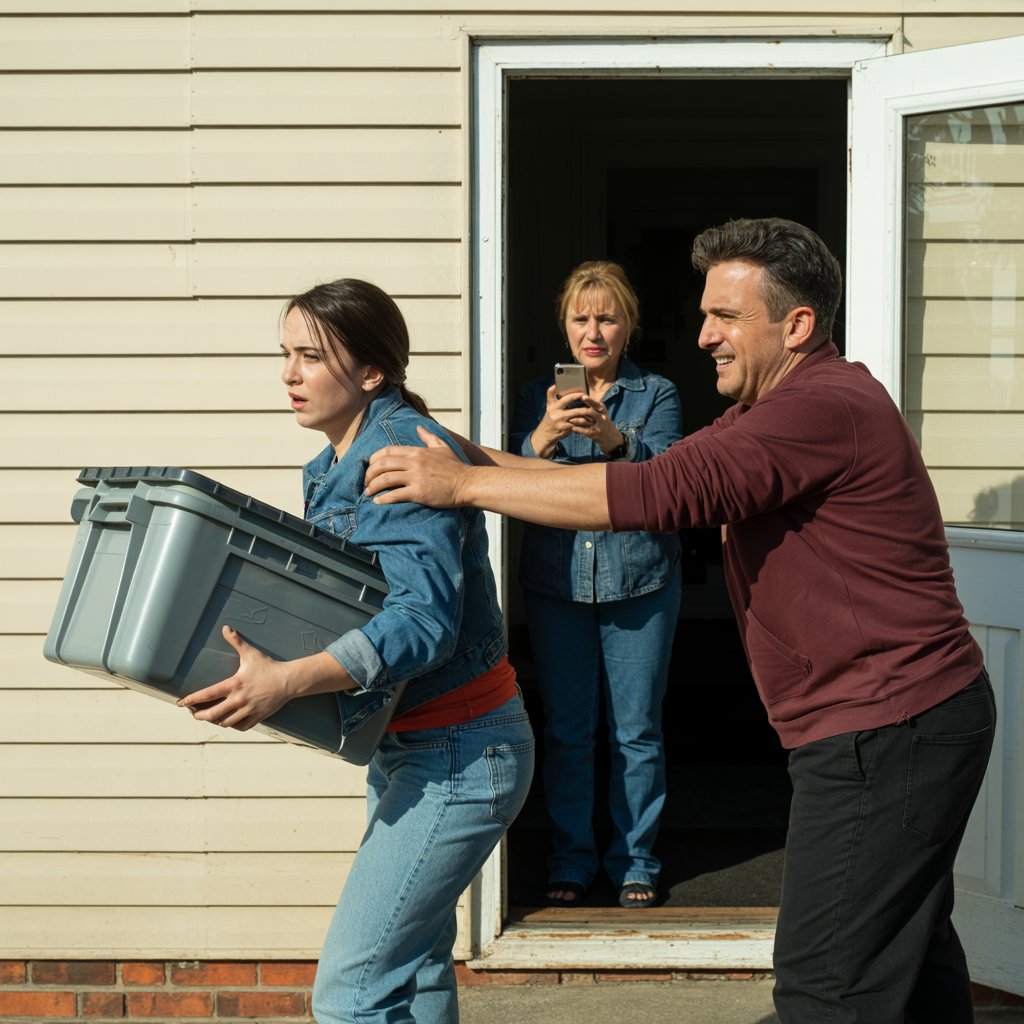 “You want to live here for free and take up space,” she called out. Then my father shoved me into the city trash can. I landed hard, the lid banging shut behind me. The stench was overwhelming. Lena filmed the whole thing, snickering, “Finally in a place that fits.”