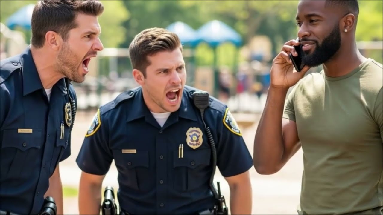 These officers had walked up expecting an easy target, someone they could bully and demean without consequences. Instead, they found themselves under the microscope, their actions being recorded at a federal level. The warm afternoon air felt charged with tension as they reached this crucial moment. Marcus remained perfectly still, his military training evident in his controlled breathing and steady gaze.