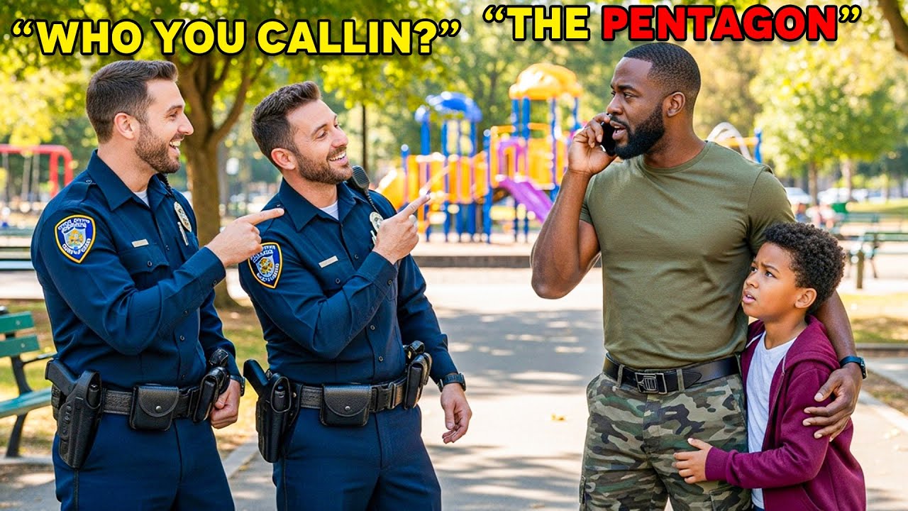 “Yes, sir,” Marcus replied, his voice steady. “I’m currently being accosted by two officers at Riverside Park while trying to spend Sunday afternoon with my son.” “Officers, identify yourselves. Badge numbers now.” The command cut through the air like a blade.
