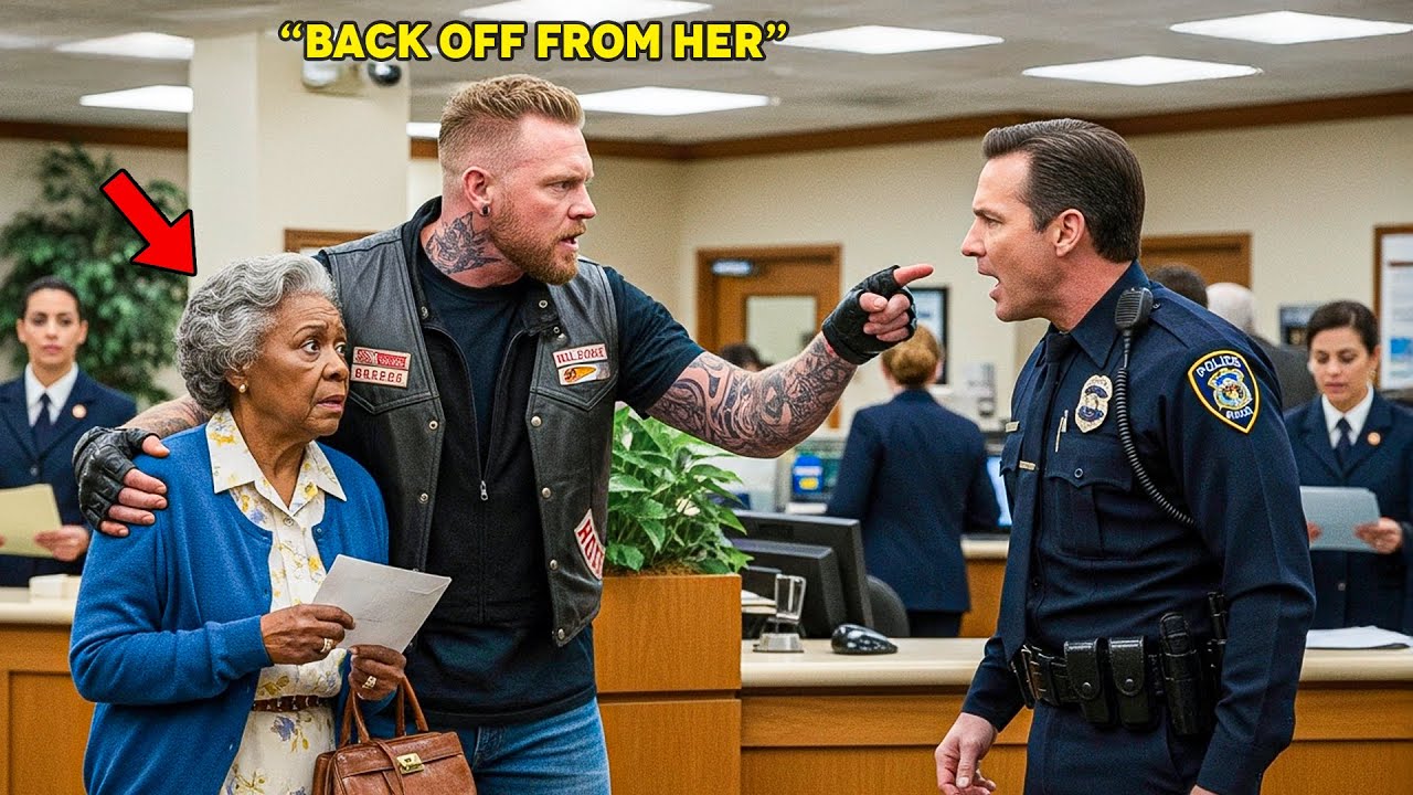 She could feel him tense, suddenly unsure as he faced not a frail grandmother he could intimidate, but something entirely different. Men who weren’t afraid of him at all. “Move aside,” Maddox ordered. But his voice had lost some of its edge. This is police business. Big Red didn’t budge. He just stood there, helmet in hand, eyes locked on Maddox, with the stillness of someone who had seen too much in life to be easily intimidated. Behind him, engines rumbled as more bikes pulled into the lot.