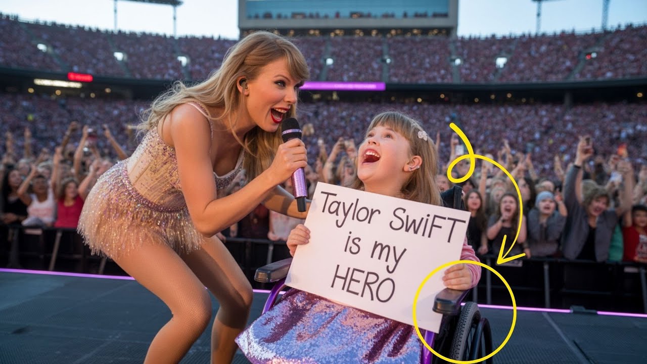 Travis Kelce was stuck in traffic on his way to Taylor Swift’s Kansas City concert when he spotted a little girl in a wheelchair holding a homemade sign. What happened next would give 80,000 fans the most emotional moment of their lives. It was the night of Taylor Swift’s highly anticipated Kansas City concert at Arrowhead Stadium.