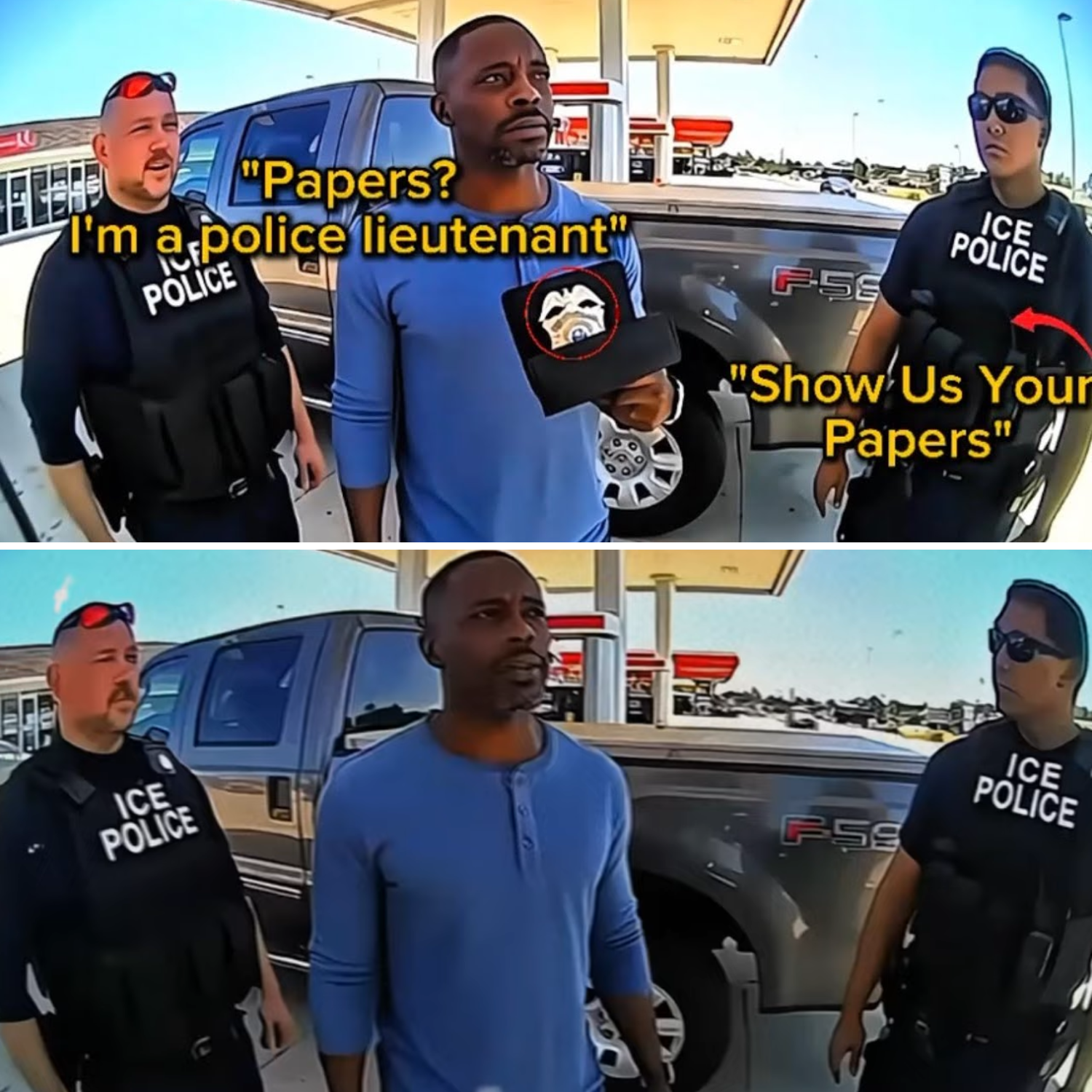 But what Mitchell didn’t count on was technology. The gas station’s surveillance system, combined with nearby security cameras, captured everything in high definition — every moment of the unjust arrest. But even more damning were the recordings from the ICE agents’ own body cameras, which, after being turned off during the illegal arrest, would eventually expose the truth.