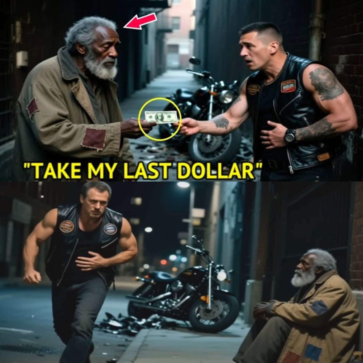 The biker’s eyes widened, staring at the $10 as if it were a fantastical apparition. “You… you serious?” his voice broke.