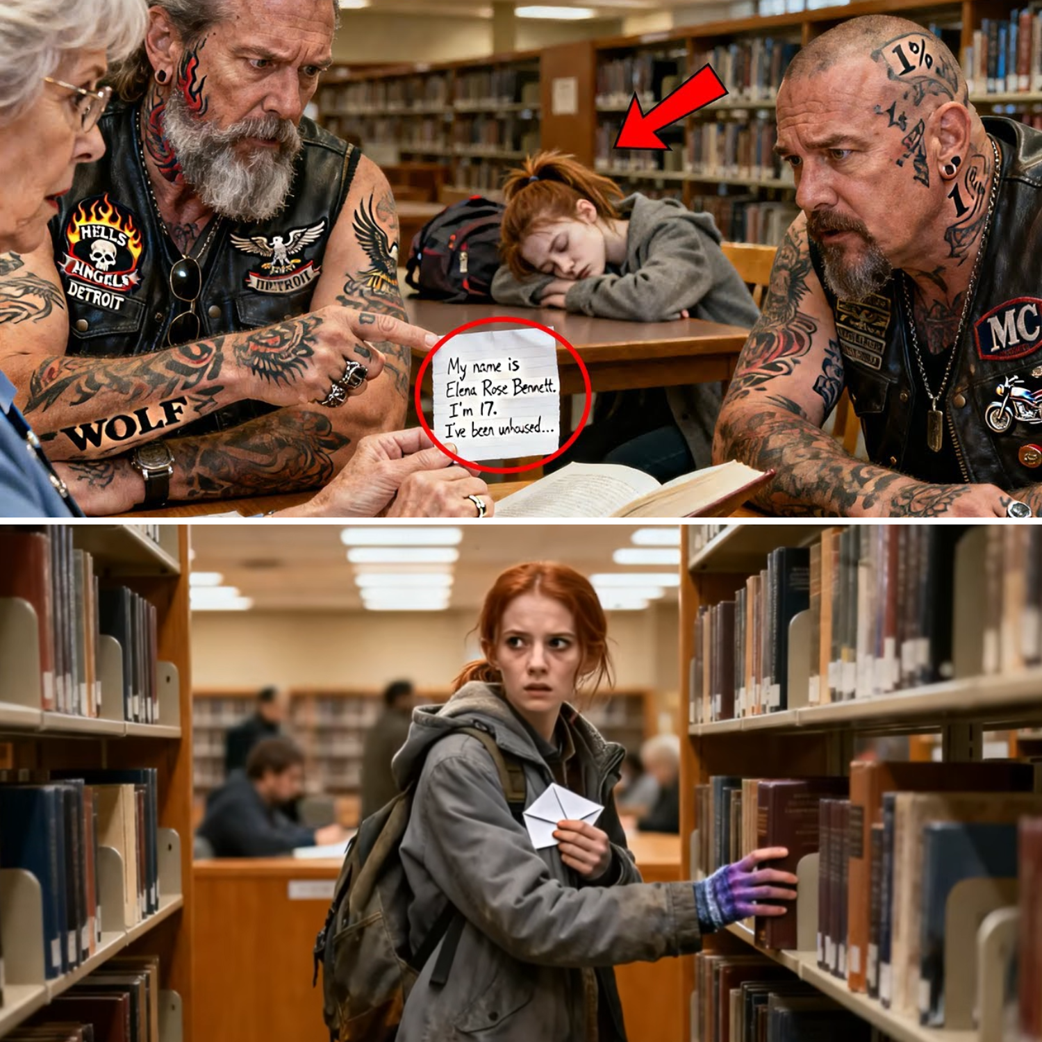 At 4:37 p.m. on a wind-battered Tuesday, a 17-year-old girl collapsed inside the Lakeside Public Library, her body finally surrendering after eleven months of sleeping on frozen subway grates. For nearly a year, librarians had watched Elena Rose Bennett’s weight drop, her coat grow thinner, her cough worsen. But it was the folded note that fell from a returned book three hours earlier that would trigger a chain reaction—one that would mobilize 400 Hell’s Angels across two states and expose a guardian who was stealing from the dead. No one saw it coming.