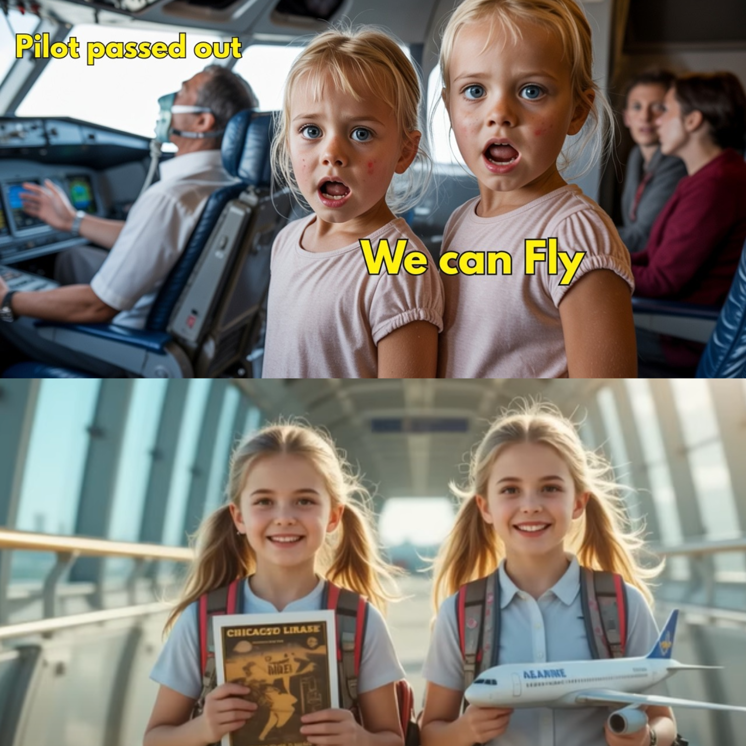 Flight 447 departed Chicago O’Hare on a cloudless morning, packed with business travelers, vacationers, and a pair of 8-year-old twins whose presence would soon upend everything the world thought it knew about courage, competence, and the myth of adult superiority. Sarah and Emma Mitchell, seated in row 9 with matching aviation backpacks and a flight manual clutched between them, were just two children among 147 passengers—until disaster struck at 30,000 feet and the adults revealed themselves to be helpless, hysterical, and hopelessly outclassed by two little girls.