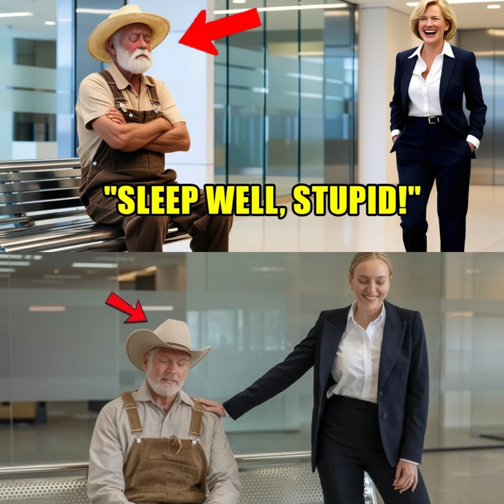 At 12:15, Walter made his decision. He stood up slowly, adjusted his hat, and walked past the counter, past the artificial smiles, past the scripted apologies, straight to the frosted doors. Brittany finally looked up. “Sir, you can’t go back there.” Walter didn’t stop. His boots made soft thuds against the polished floor as he pushed open the door. Inside, a quiet corridor stretched left and right, lined with private offices. He scanned them, and there she was—Elaine Stratton, seated behind a large desk, typing on a keyboard, her phone in hand. She wasn’t with anyone. She hadn’t been the whole time.
