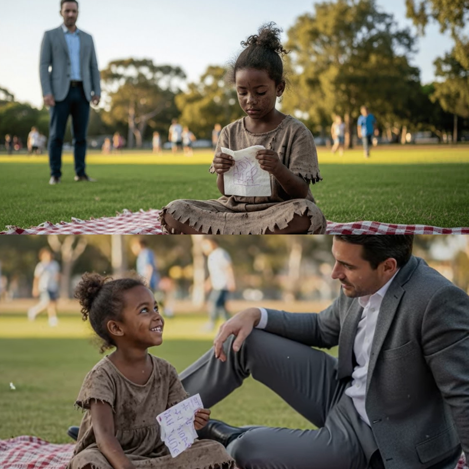 Are you waiting for someone, sweetheart? The question floated over the sunlit grass of Crescent Park, gentle as the afternoon breeze. Thomas Grant, billionaire, philanthropist, and architect of a dozen shining towers, paused a few feet from the little Black girl seated alone on a checkered blanket. Anna, six and three-quarters, looked up with eyes far older than her years. “No, sir. They’re already here,” she said, gesturing to the empty plates carefully set around her. No food, no cups, no napkins—yet her tone was solemn, not playful. It was ritual, not make-believe.