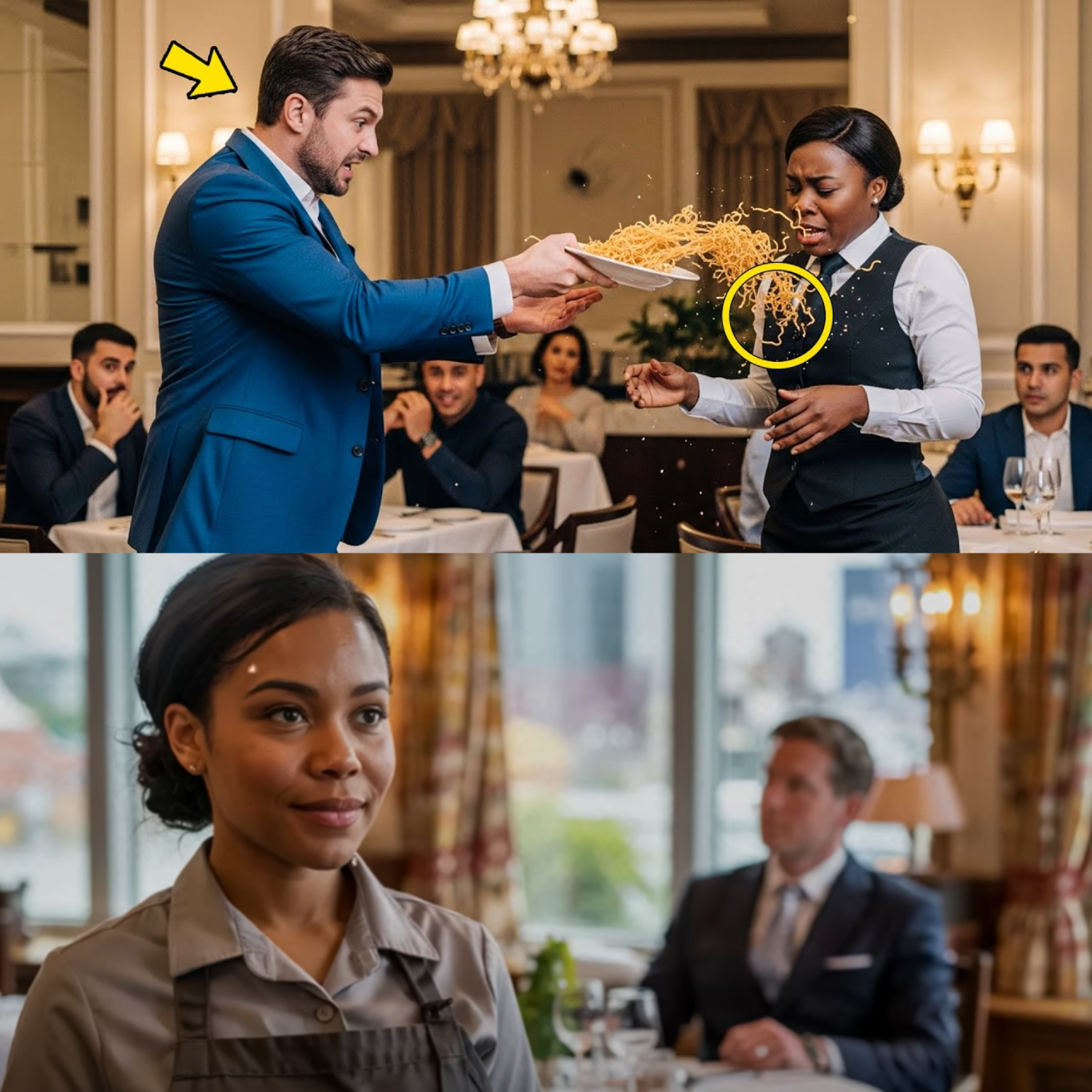 “Billionaire Throws Food at Black Waitress—Then She SHOCKS Him with a Response That DESTROYS His Ego!”