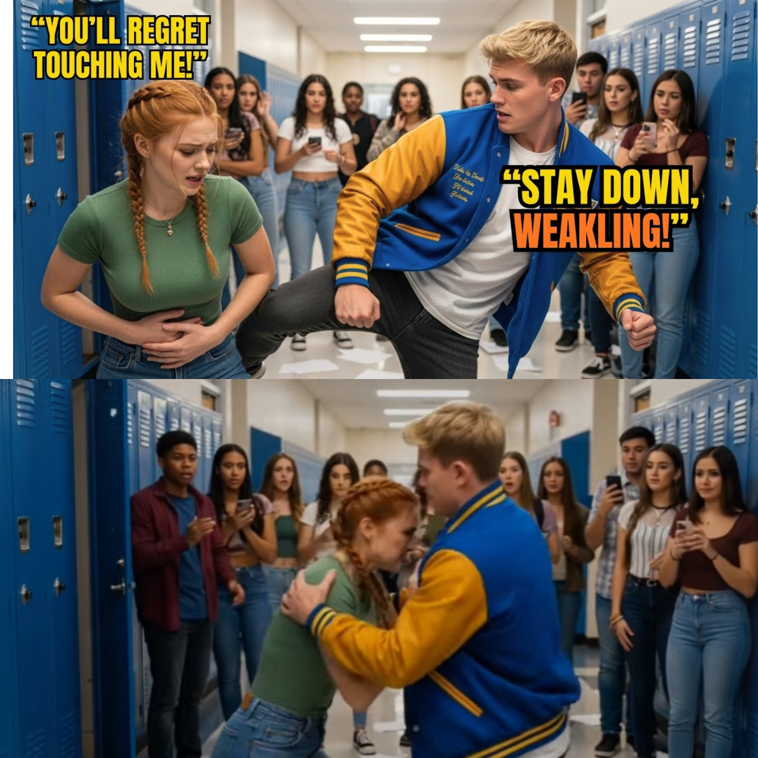 Jake’s smirk widened. This was the reaction he wanted. “A challenge or what? New girl? You gonna cry? Go get a teacher.” He leaned in, voice dropping to a venomous whisper meant only for her, but the silent crowd caught every syllable. “This is my school. You breathe here because I allow it.”