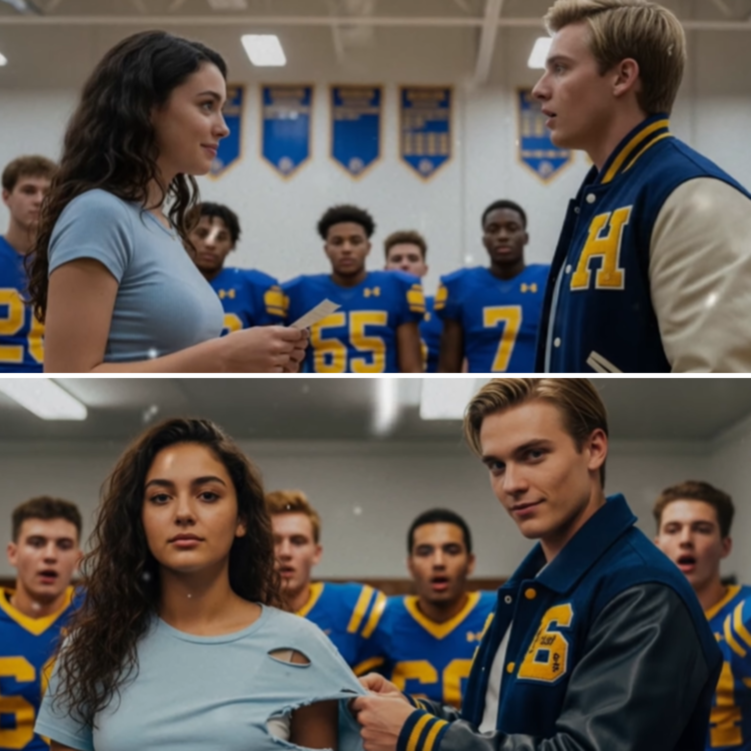Lena Hart had always been the quiet one. She walked through school corridors like a whisper nobody bothered to hear. Soft brown hair always tucked behind her ears, clothes that weren’t fashionable but were clean, neat, and carefully chosen to avoid attention. Attention had never been kind to her. She lived alone with her mother in a small one-bedroom apartment behind the old bakery on Maple Street. Money was tight, but love wasn’t. Her mom worked long shifts at the laundry shop, leaving Lena to take care of herself most afternoons. Lena never complained. She understood. She tried to make her mother proud in the only way she knew—by staying out of trouble, studying hard, and dreaming quietly. But high school has a way of cracking even the calmest hearts.
