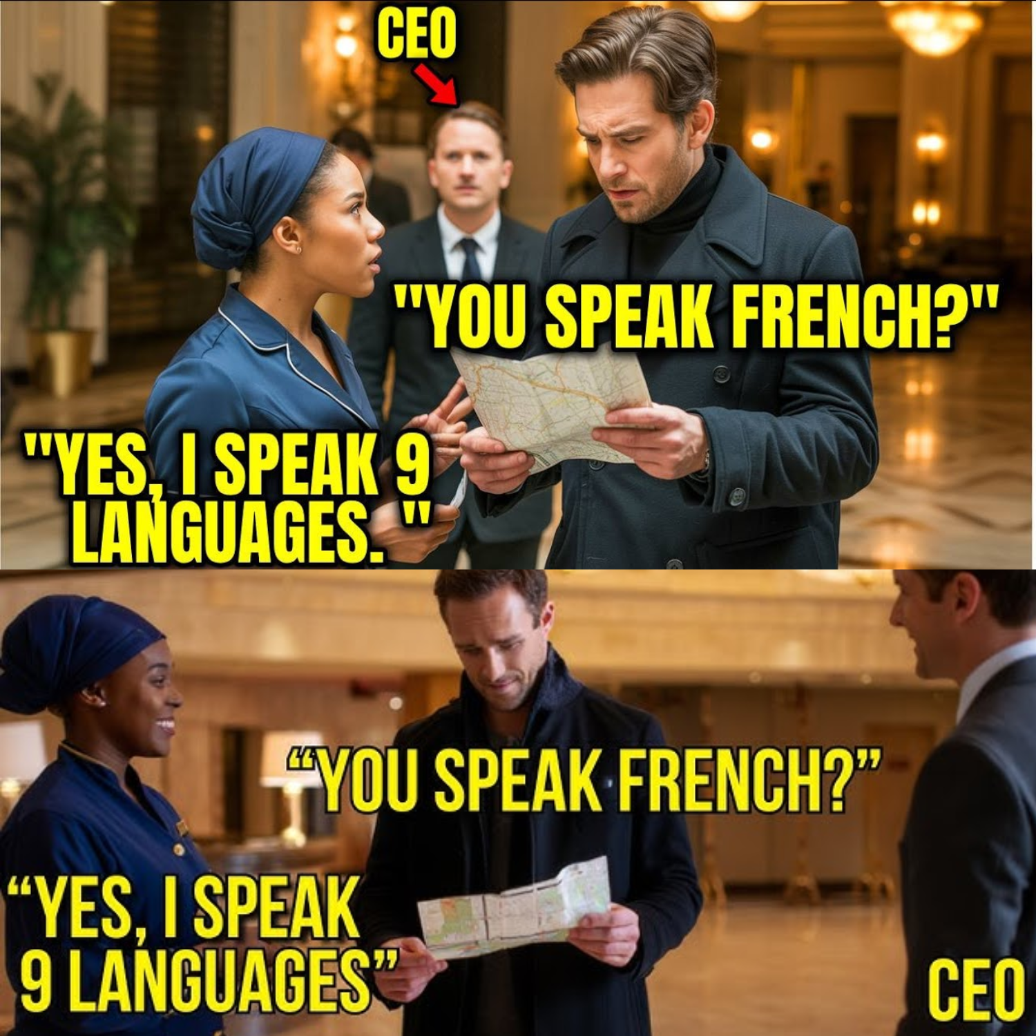 Before he could fully process what he’d just seen, she turned to a delivery man who was struggling with a clipboard. She switched to Spanish, her tone just as fluid and natural. The man nodded, a look of relief washing over him as he thanked her. Then, without missing a beat, she addressed another vendor in French, helping him sort out a delivery issue.
