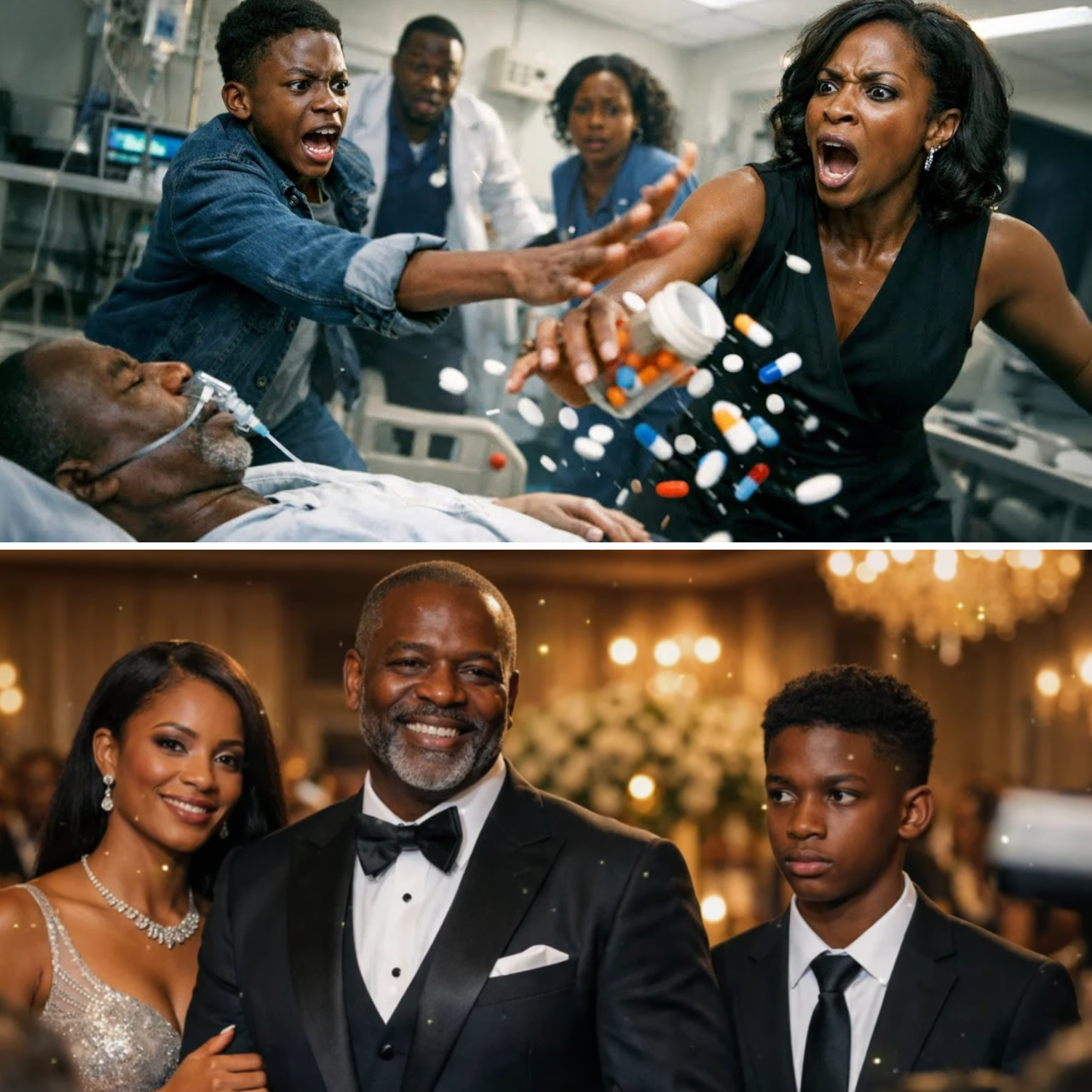 The rain was pounding hard against the marble floors of the mansion when a sharp cry tore through the night. “Dad, Dad, wake up.” A young boy knelt beside a fallen man, his small hands shaking as they clutched his father’s chest. The billionaire lay motionless, his breathing shallow, his skin cold. Across the room, a woman stood frozen, her face calm, her eyes unreadable. The boy looked up at her, fear flooding his eyes. Then his voice cracked. “Dad, she set you up.”