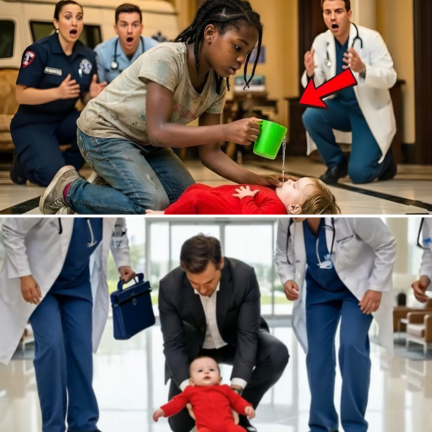 Doctors stared at the girl kneeling beside the baby, water dripping from the green cup onto the marble floor. She hadn’t meant to save him. She had meant to stop him from dying. Kesha pulled back immediately, fear crashing over her now. “I’m sorry,” she whispered. “I’m sorry. I didn’t know.” Dr. Carson knelt, checking Benjamin quickly, thoroughly. “He’s breathing strongly.” No miracle, just timing, just risk. Just instinct colliding with medicine at the exact right second.