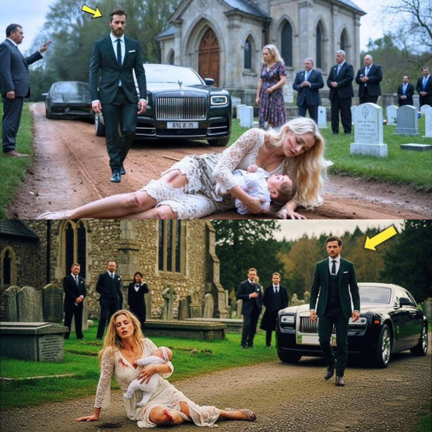 Grace clutched Emily and walked toward the door, past the mourners outside and the parade of expensive cars. On the gravel path, her legs gave out—shock, grief, and horror crashed over her. She collapsed onto the wet dirt, twisting to protect Emily. Mud splattered her dress, Emily wailed, and Grace tried to soothe her, but she couldn’t stop shaking. People stared. Victoria and Richard watched impassively, as if Grace were a problem solved by gravity. “Someone should help her,” a voice said uncertainly. “She’s fine,” Richard called out. “Just being dramatic.”