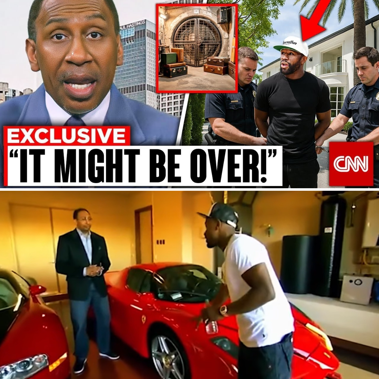 Amidst the uproar, ESPN’s Stephen A. Smith—known for his fiery opinions and no-holds-barred commentary—had a sharp, candid reaction. Smith, who has previously commented on Mayweather’s flashy lifestyle, didn’t hold back as he responded to the shocking revelations. “This is terrifying,” Smith exclaimed. “They are going after Floyd Mayweather’s bag, and it looks like they’ve found something major.”