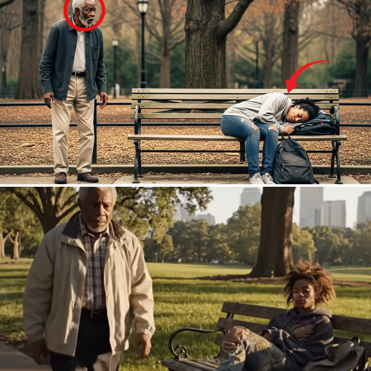 As he rounded a familiar bend near the old oak tree, he saw a young woman sitting on a bench. Her clothes were ragged, and a cardboard sign leaned against her backpack. It was impossible, but there she was—Amara, his granddaughter.