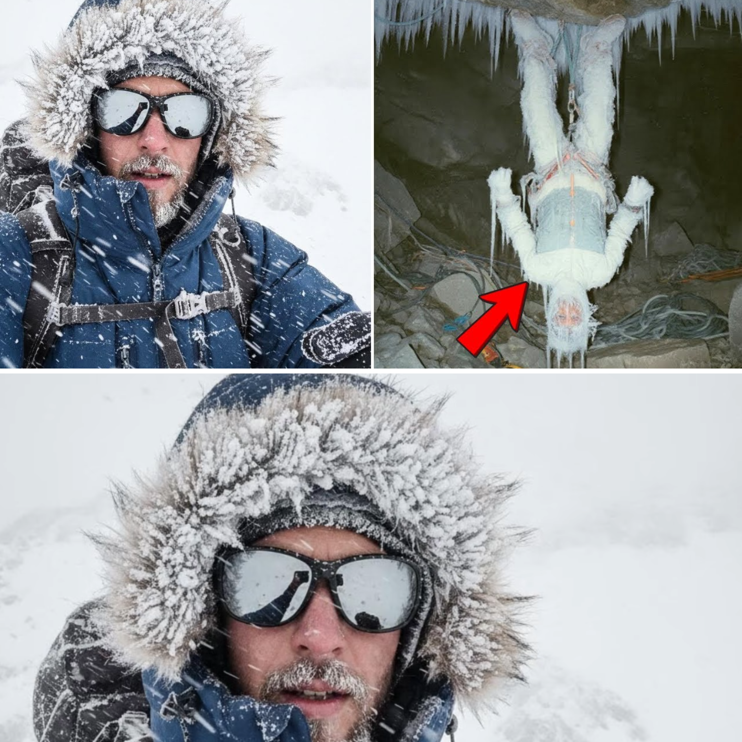 At first, Walsh thought it was an illusion caused by light refraction. But when Dr. Pierce looked down herself, there was no doubt. A man in mountaineering gear hung inverted, frozen solid, as if time had stopped mid-sentence.