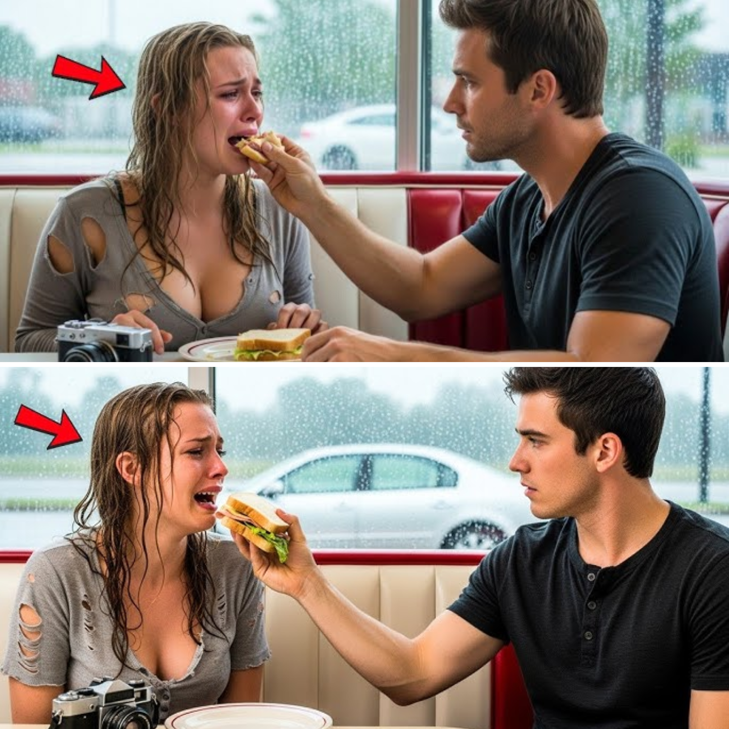 Ara finished eating but didn’t leave. She sat staring at her empty wrapper as if afraid that moving would erase what little safety she’d found. The storm outside calmed, but her breathing remained shallow, uneven. Rowan called Meera’s school to say he’d be late picking her up. Then he offered Ara his jacket, though it left him shivering. When she tried to refuse, he simply wrapped it around her shoulders anyway. Her eyes widened in surprise as though kindness was something she hadn’t seen in years. Over the next hour, the two sat there in the quiet hum of the diner. Ara slowly thawed, her posture easing, her expression softening, though fear still flickered behind her eyes. She told Rowan she had no money, no phone, no belongings except the small camera she clutched like a lifeline. He offered to drive her somewhere safe, but she grew tense and shook her head violently. She didn’t explain and Rowan didn’t pry. Instead, he gave her his leftover change so she could get another meal later. Even though that meant he’d need to skip dinner, she whispered, “Thank you,” in a voice that cracked like glass.