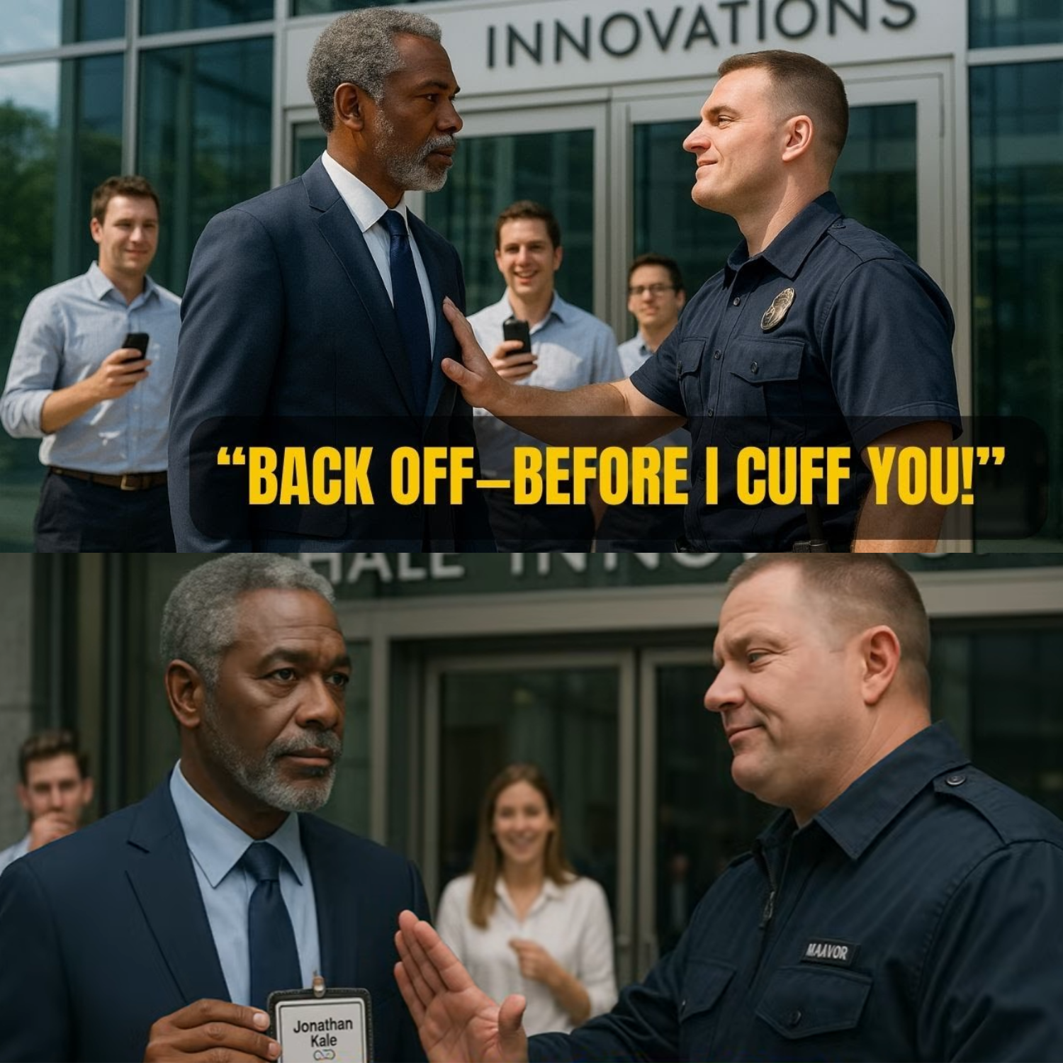 The guard snorted. “Fake IDs are everywhere. Anyone can print this.” Laughter trickled from nearby employees. Phones captured the moment. Whispers turned to cruel entertainment: “Look at this guy. He thinks he’s Jonathan Hail.”