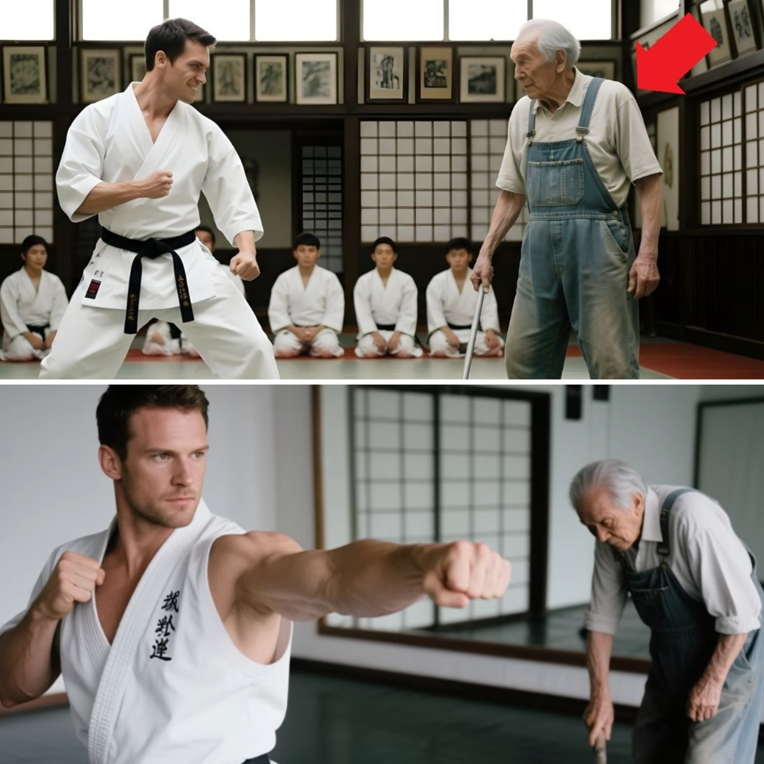 The dojo remained silent. The only sound was Dominic’s ragged gasps. Then, a collective gasp rippled through the students. They stared, mouths agape, at their fallen master, then at the janitor—who stood over him, hands once again at his sides, a faint, almost pitying look on his face. Marco extended a hand to Dominic—a gesture of quiet aid, not triumph. Dominic, crimson with shame, ignored it, scrambling to his feet—not with the grace of a martial artist, but with the clumsy, desperate movements of a man broken.