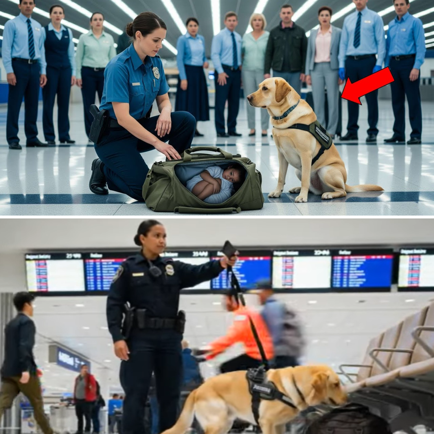 With trembling hands, Maya unzipped the bag. The crowd gasped. Inside, curled into a ball, was a two-year-old girl, bruised, terrified, and barely conscious. Her name was Chloe. The terminal fell silent. But Scout just sat, mission complete, his eyes never leaving the child. He was the only one who heard her silent plea.