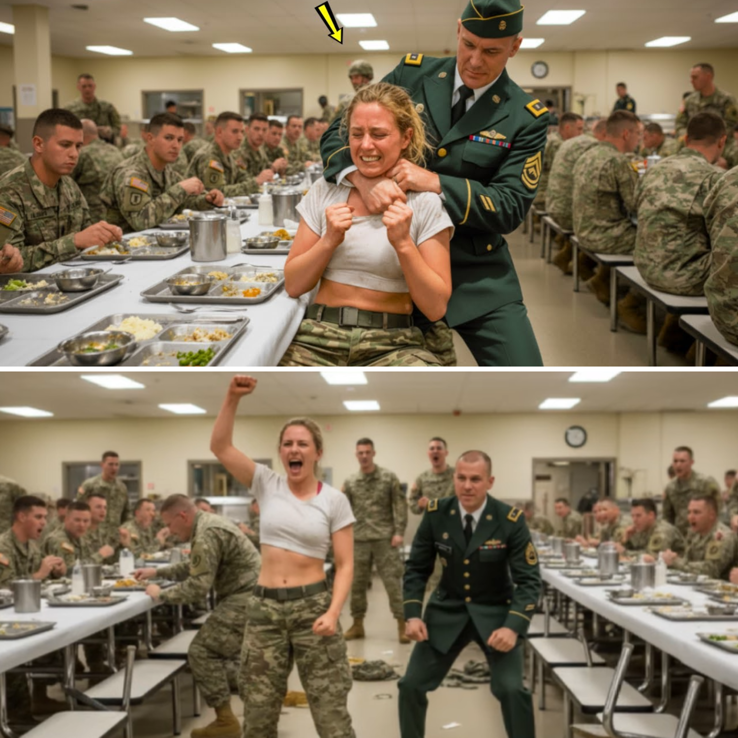 Without warning, one cadet lunged, attempting to grab her from behind while another reached for her arm. Sarah’s body responded with muscle memory honed through years of combat training. In one fluid motion, she sidestepped, redirected the first cadet’s momentum, and sent him sprawling into his companion. Both crashed to the floor with startled grunts.