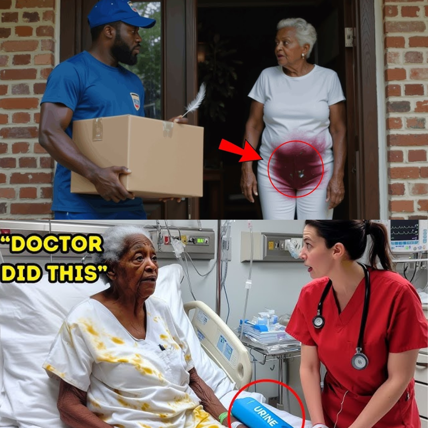 Fueled by unease, Darius returned to Mrs. Thompson’s house later that day. The air around the porch carried a faint but unmistakable stench—something sour and unsettling. He rang the bell again. After what felt like an eternity, the door creaked open. There stood Mrs. Thompson, frail and disoriented. Her hair was greasy, her clothes rumpled and stained with dark red blotches on her pants. The smell was stronger now, wafting from inside the dimly lit house.