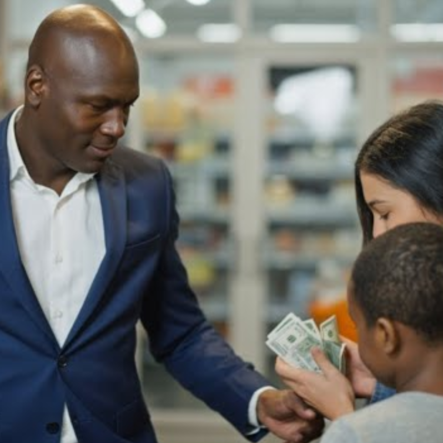 Michael Jordan thought he was just buying chicken and vegetables. He thought he could slip into a Charlotte grocery store on a rainy Tuesday night, keep his head down, and be just another man in a hoodie. But when he saw a young mother at the checkout, breaking down as she counted crumpled bills and loose coins, everything changed. Her kids watched, clutching worn teddy bears, as the cashier announced she was $47 short. The mother’s hands shook. Her lips quivered. She started to put back milk, bread, and chicken — the basics her children needed to survive.