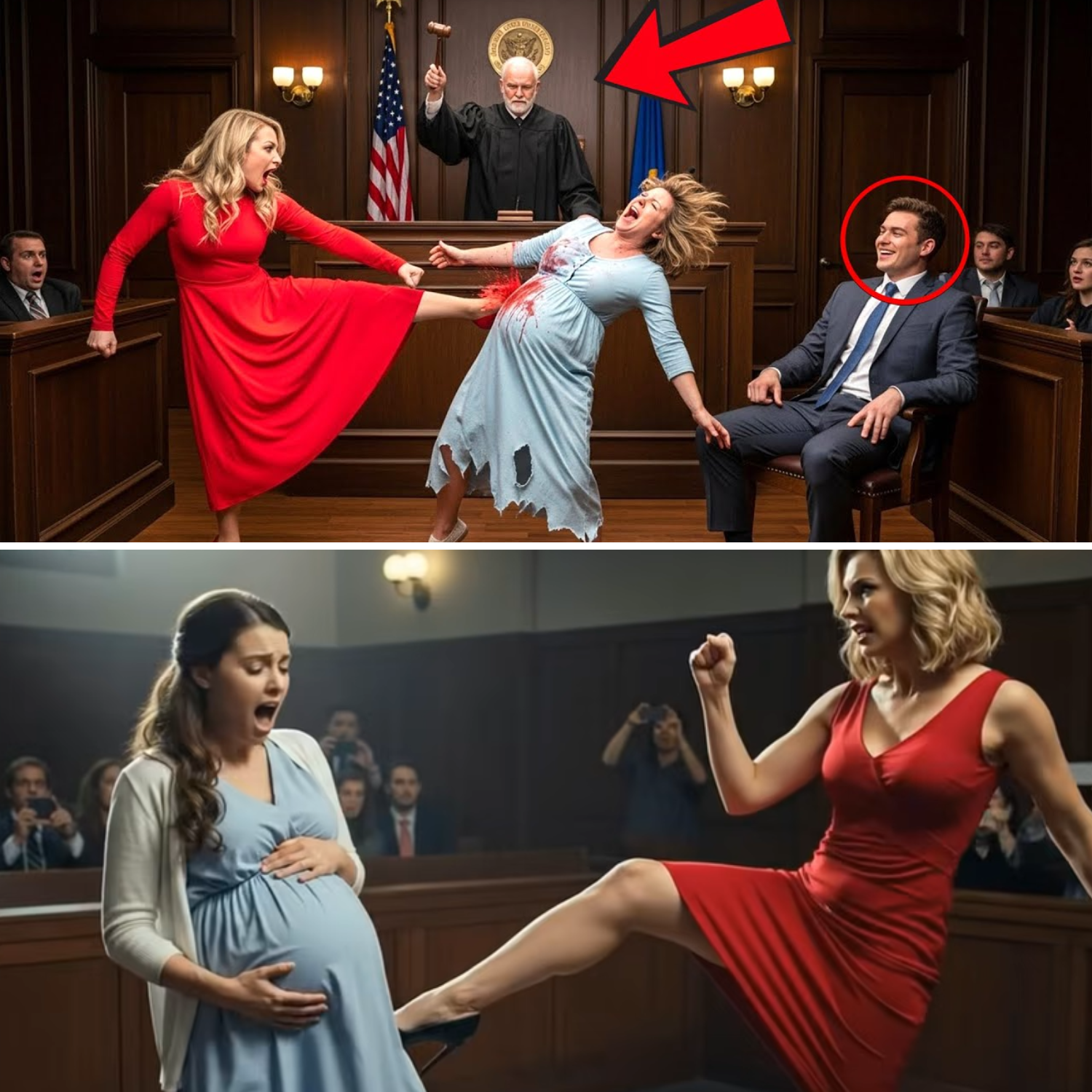Mistress Kicks Pregnant Wife in Court—Millionaire Laughs, Not Knowing the Judge Is Her Father