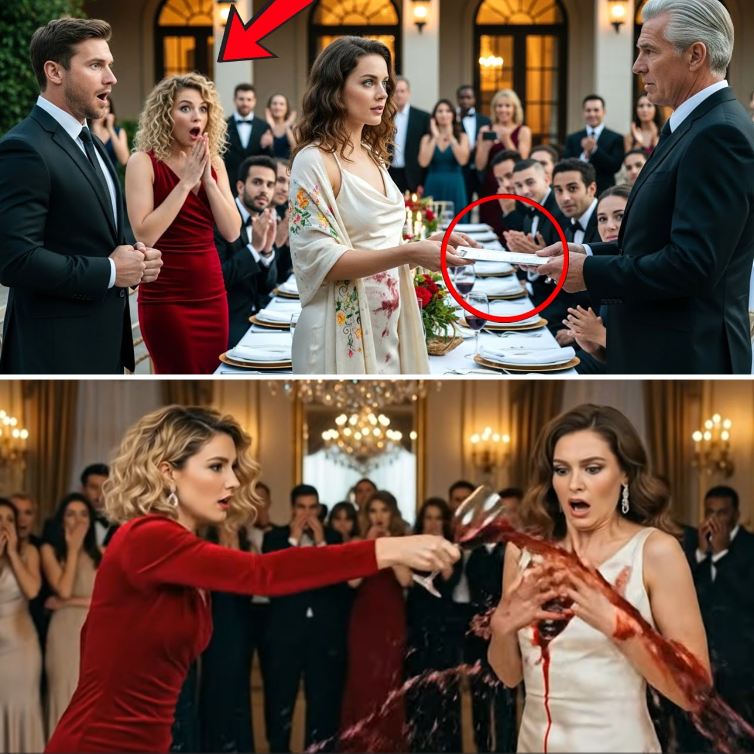 The Montgomery mansion was supposed to be a sanctuary of old money, tradition, and family pride—a place where every chandelier sparkled and every smile was perfectly practiced. But on this night, as laughter and jazz floated through the gilded halls, everything changed with a single act of cruelty. Olivia, the mistress, decided she’d waited long enough for the spotlight. In front of dozens of relatives, she poured a full glass of red wine down Evelyn’s cream gown, turning the wife’s dignity into a public spectacle. The room fell silent. Phones were raised. The humiliation was instant and complete. Olivia smirked, thinking she’d finally won. She had no idea that the most powerful man in the Montgomery dynasty was about to turn the tables—and destroy her and Marcus, the cheating husband, with a truth that would echo through the mansion’s marble halls forever.