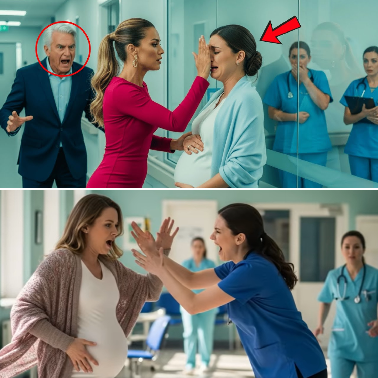 Something in Evelyn broke. “I’m carrying his child,” she said through clenched teeth. “If you had an ounce of decency, you’d walk away.” Sierra laughed, cruel and echoing. “Decency doesn’t buy diamonds.” Then, in one swift motion, Sierra raised her hand and slapped Evelyn across the face. The sound cracked through the corridor like a gunshot. A nurse screamed. A patient dropped his coffee. Evelyn stumbled, one hand clutching her belly. Pain rippled through her stomach—sharp, immediate, terrifying. She gasped, knees buckling.