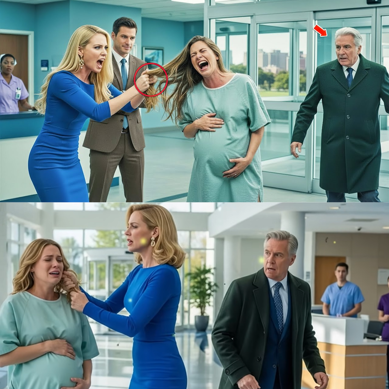 The sound of desperate crying echoed down the sterile hospital corridor before anyone could even process what was happening. A heavily pregnant woman, clutching her stomach, gasping for breath, staggered backward as another woman in a royal blue dress yanked her hair with a scream that vibrated through the walls. Nurses froze in shock; patients watched from their wheelchairs, mouths agape. For a few seconds, time itself seemed to stop, suspended in the violence of jealousy and heartbreak. The woman in the hospital gown, her face pale and drenched in tears, was not just any patient—she was about to give birth. And the one attacking her was the mistress of her husband, a woman who had waited too long to take revenge for a love she could never truly own. But what the mistress didn’t know was that this quiet, humble soul had a father whose very name could silence an entire city.