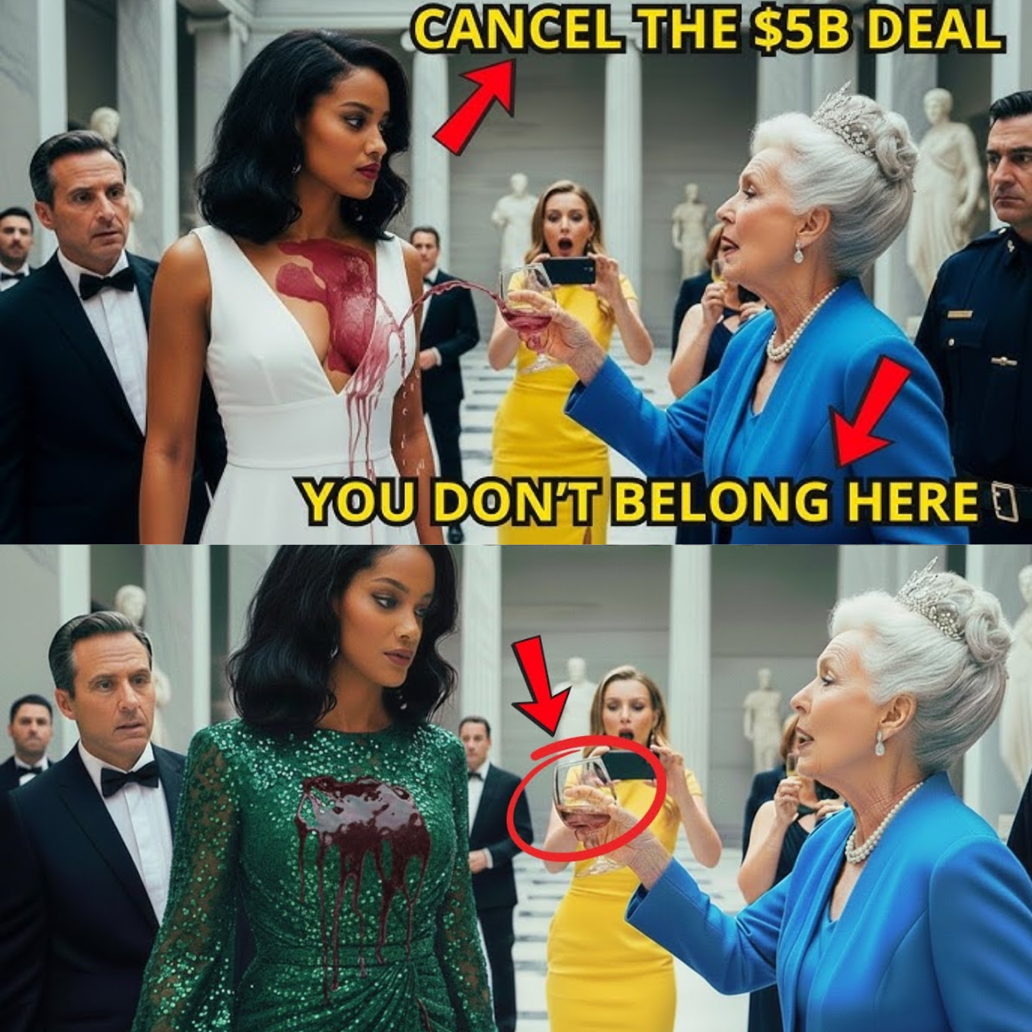 Gasps tore through the room. The red liquid glistened under the chandelier’s light, cascading in a cruel rhythm onto the floor. Someone laughed; someone filmed. Eleanor handed the empty glass back to the waiter. “Accidents happen,” she said smoothly.