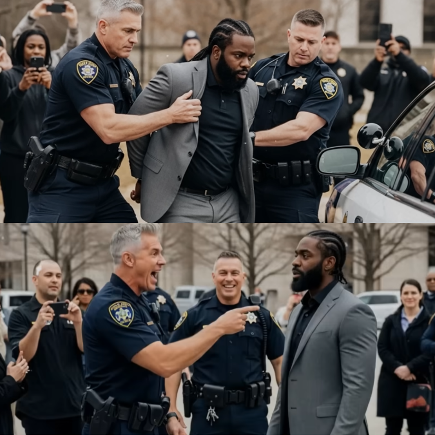 The officers staggered like men punched in the chest. How could he know? Cameras zoomed in. Crowds leaned closer. And Marcus, bloodied and torn, transformed humiliation into a trial.