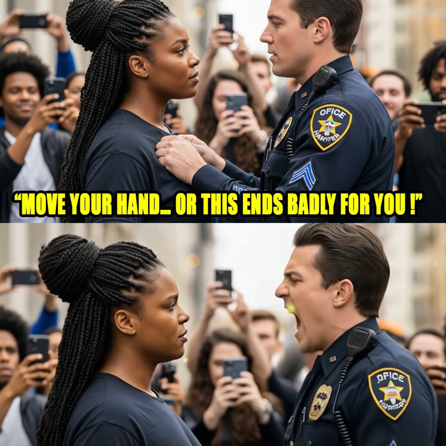 “Hey, you paid for that?” Cole barked, his voice amplified by the badge on his chest and the whiteness of his knuckles. Talia froze, her hand tightening on the tote. “Excuse me?” she asked, her tone steady, but the crowd already sensed a storm brewing. “You people always play innocent,” Cole sneered, his words slicing through the air like a blade. “Open the bag.” Phones lifted, screens glimmering, as pedestrians paused—some out of curiosity, others out of dread, all of them witnesses to a scene that had played out too many times in too many cities.